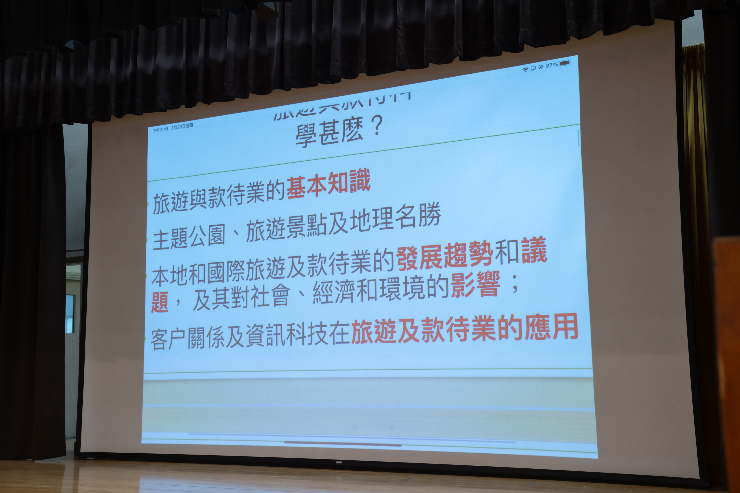 旅遊與款待科於29/2舉辦中三選修科試讀課程。
